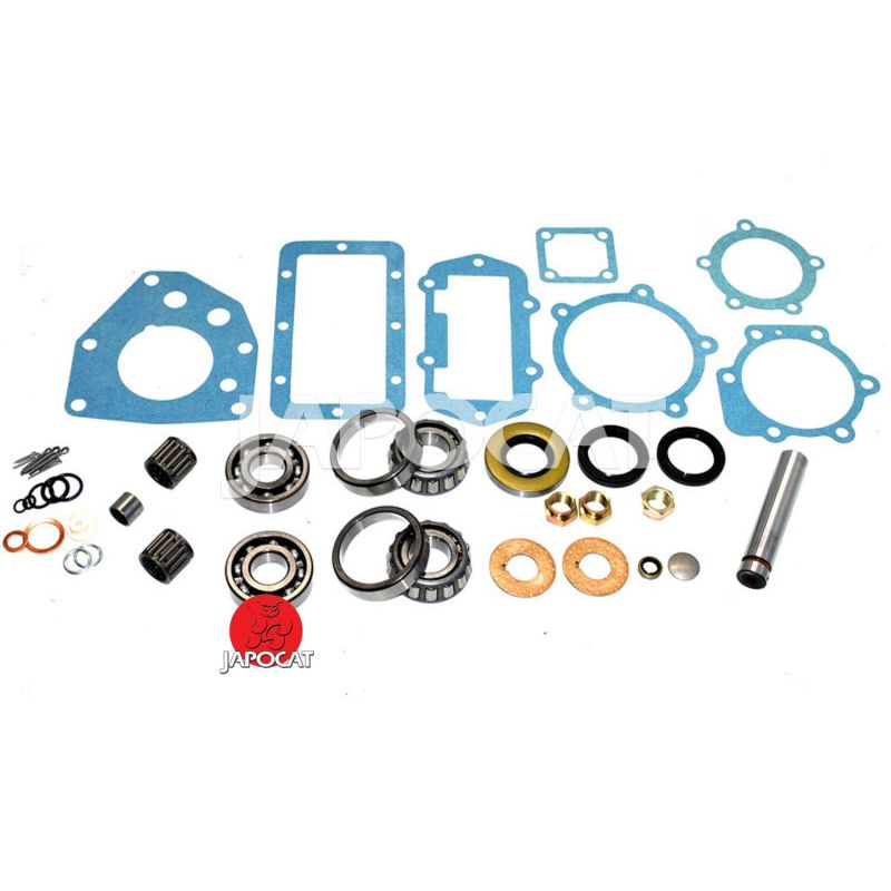 Contient : tous les roulements, cages à aiguilles, cages à rouleaux, butées bimétal de train double, joints spi, joints papier, axe lisse sous train double, soufflet de protection
