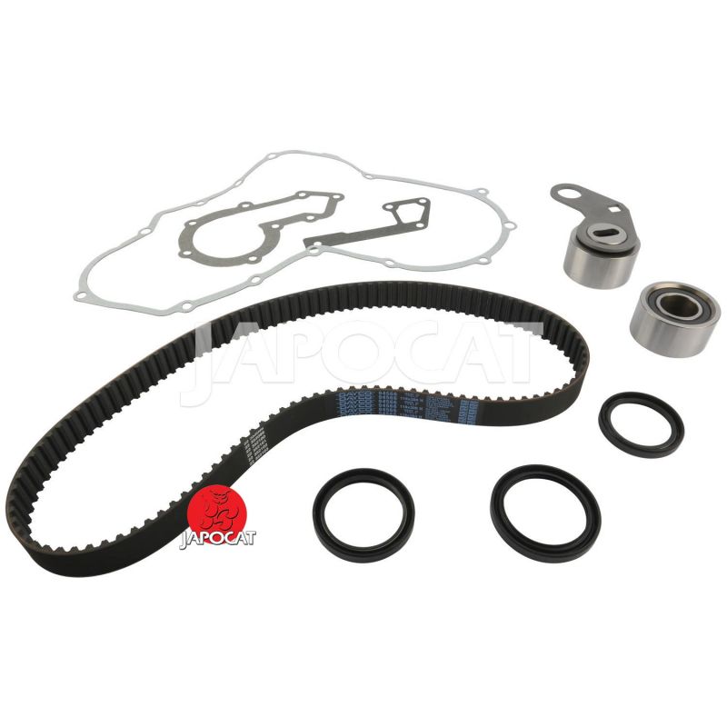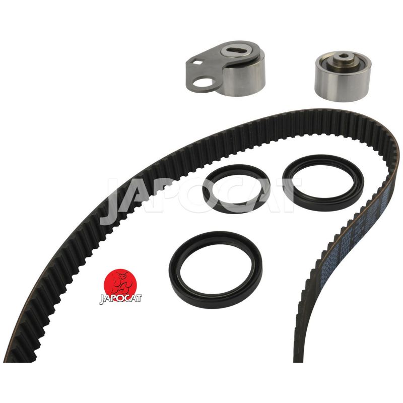 Contient: Galet tendeur, poulie libre si équipé, joint spi arbre à cames + villebrequin , joint de pompe a eau si démontage nécessaire