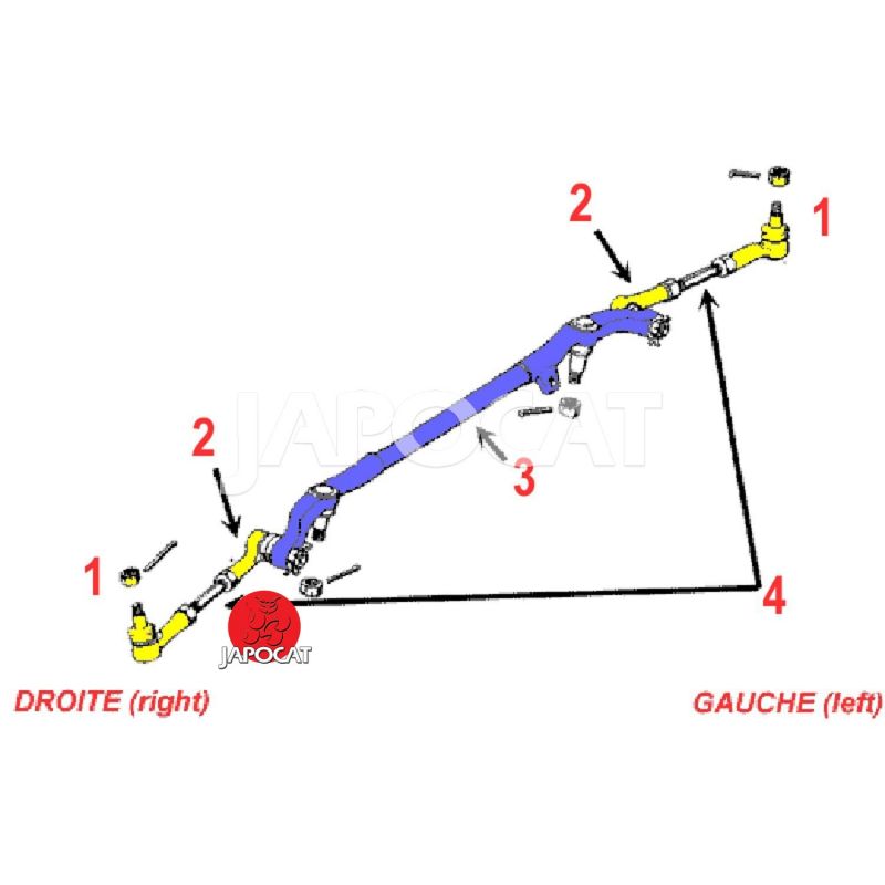 Barre centrale entre bras de direction droit et gauche reposant sur bras de bielle pendante et bras relais libre